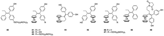 - Jaouen, G.; Vessières, A.; Top, S. Ferrocifen Type Anti Cancer Drugs. Chem. Soc. Rev. 2015, 44, 8802–8817. [Google Scholar] [CrossRef]