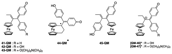 - Vessières, A.; Wang, Y.; McGlinchey, M.J.; Jaouen, G. Multifaceted Chemical Behaviour of Metallocene (M = Fe, Os) Quinone Methides. Their Contribution to Biology. Coord. Chem. Rev. 2021, 430, 213658. [Google Scholar] [CrossRef]