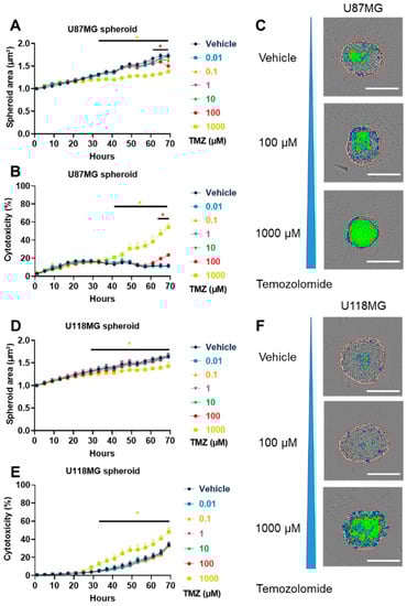3.1. TMZ Induced GBM Cytotoxicity in Both 2D and 3D In Vitro Models