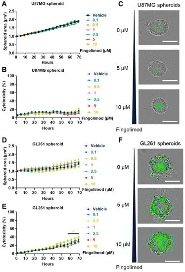 3.5. Fingolimod Induced Cytotoxicty in 2D Culture but Weakly Affected 3D Spheroid Culture