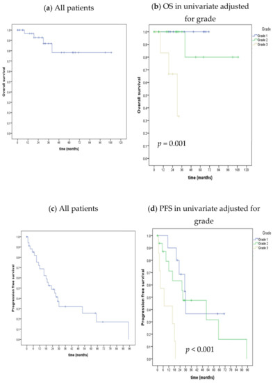 Kaplan–Meier method for OS and PFS including all patients and adjusted for grade.