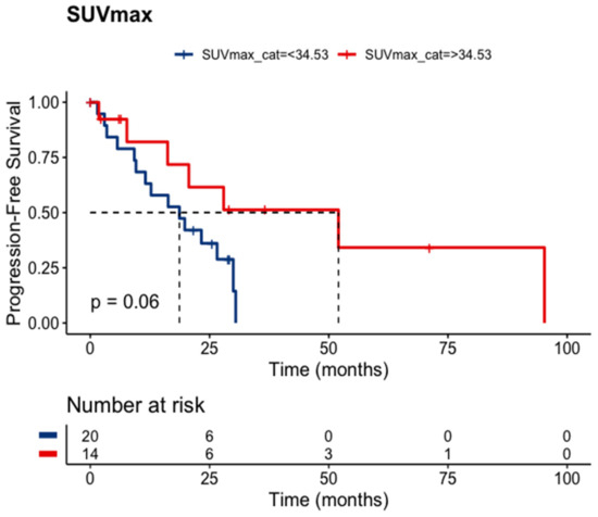 PFS according to SUVmax (n = 34).