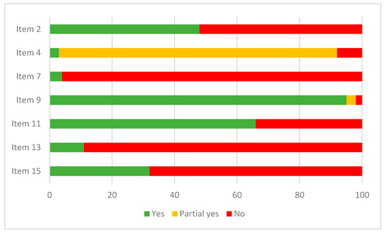 Quality assessment of the systematic reviews according to the seven critical domains of AMSTAR 2 [14].