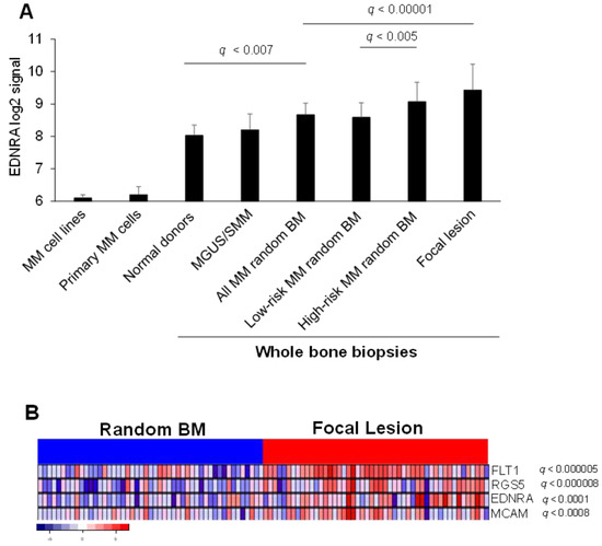 4.1. EDNRA Is Overexpressed in the MM BM Microenvironment and Is Associated with Disease Progression and Poor Outcome