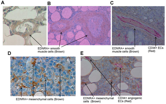 4.2. In Interstitial BM of Patients with MM, EDNRA Is Detected in Vascular SMCs and in Cells That Resemble Fibroblasts