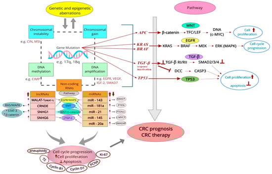 Together with changes in chromatin structure and DNA methylation, gene mutations in CRC lead to the dysregulation of signaling pathways responsible for cell proliferation, apoptosis, metabolism, differentiation, and survival [16,21,31,32].