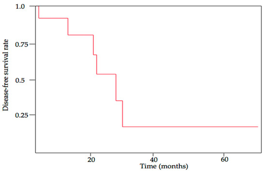 Kaplan–Meier disease-free survival curve for retroperitoneal serous carcinoma.