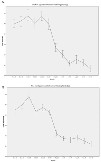 Figure 1A. This translated into an overall improvement for the day, with the median time to start treatment decreasing from 77 (40–120) minutes to 47 (20–79) minutes (