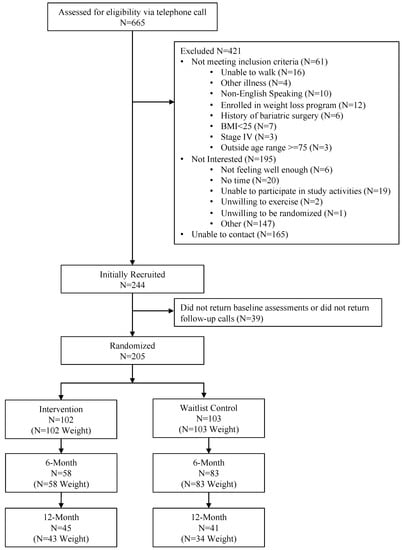 - Harrigan, M.; Cartmel, B.; Loftfield, E.; Sanft, T.; Chagpar, A.B.; Zhou, Y.; Playdon, M.; Li, F.; Irwin, M.L. Randomized Trial Comparing Telephone Versus In-Person Weight Loss Counseling on Body Composition and Circulating Biomarkers in Women Treated for Breast Cancer: The Lifestyle, Exercise, and Nutrition (LEAN) Study. J. Clin. Oncol. 2016, 34, 669–676. [Google Scholar] [CrossRef]