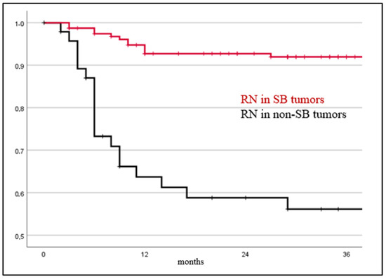 In this series, no increased risk for RN was shown in patients with SB tumors with prior radiotherapy. This confirms the low risk of RN in SB tumors in general since previous radiotherapy has been associated with an increased risk for RN in different tumors in case of re-irradiation [16,23,35]. However, due to the low patient number with re-irradiation in this series, future prospective trials will be needed to better address the role of previous irradiation on the occurrence of RN in SB tumors.