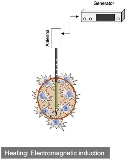 Electromagnetic energy operating at 915 MHz or 2.45 GHz may be used to produce very high (>150 °C) temperatures, which is known as an induction heating [1]. Microwave heating is caused by the rotation of water molecules, and the process differs from the Joule heating mechanism that underpins RFA (Figure 2). In addition, MWA does not require a grounding pad because an electric current does not flow through a patient’s body (Table 1).