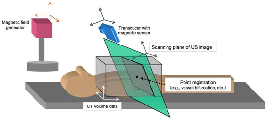 - Minami, Y.; Chung, H.; Kudo, M.; Kitai, S.; Takahashi, S.; Inoue, T.; Ueshima, K.; Shiozaki, H. Radiofrequency ablation of hepatocellular carcinoma: Value of virtual CT sonography with magnetic navigation. AJR Am. J. Roentgenol. 2008, 190, W335–W341. [Google Scholar] [CrossRef] [PubMed]