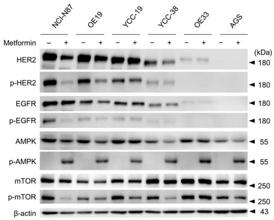 APA StyleKim, J.-S., Kim, M. Y., & Hong, S. (2023). Synergistic Effects of Metformin and Trastuzumab on HER2 Positive Gastroesophageal Adenocarcinoma Cells In Vitro and In Vivo. Cancers, 15(19), 4768. https://doi.org/10.3390/cancers15194768