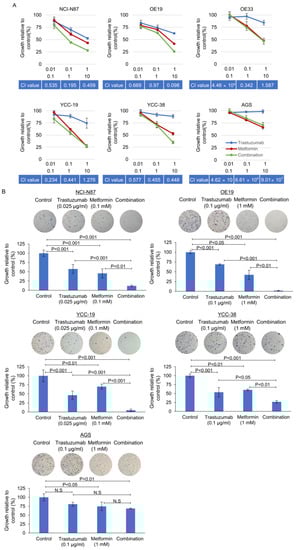 Chicago/Turabian StyleKim, Jin-Soo, Mi Young Kim, and Sungyoul Hong. 2023. "Synergistic Effects of Metformin and Trastuzumab on HER2 Positive Gastroesophageal Adenocarcinoma Cells In Vitro and In Vivo" Cancers 15, no. 19: 4768. https://doi.org/10.3390/cancers15194768