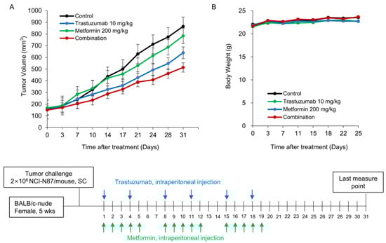 3.5. Combination of Tmab and Metformin Shows Superior Efficacy in Suppression of Tumor Growth In Vivo