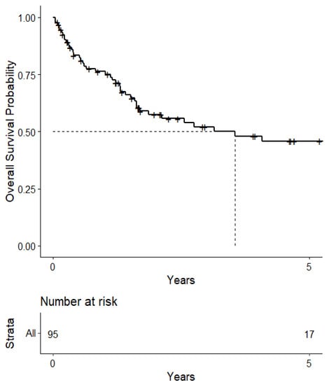 Furthermore, our ALK and EGFR mutational patient cohort that received targeted therapy had a larger median OS and LRFS (6.01 and 5.75 years, respectively) than the group that did not have any mutations in biopsied brain tissue but did receive immunotherapy (4.08 and 1.89 years, respectively). These survival times, however, were greater than the median survival time for patients who did not receive any immunotherapy (1.70 and 1.76 years, respectively). The cost versus the benefit of improving OS by this much should be assessed in future studies. All three of our patient cohort groups had longer survival times than those published in the literature, especially for the groups that received targeted therapies, which tended to be 8–26 months OS [,,,,]. In addition, literature findings showed 18–24 months to be the range for local recurrence free survival, externally validating our findings [,,,]. Furthermore, in our cohort, EGFR mutational status trended towards being significant in prolonging LRFS, which is in line with findings in the literature as well []. Thus, the combinations of targeted therapies in this series and their respective chronology of use seem to confer survival and local control benefits and will be studied further through future work from our group to create and evaluate formally assessable results.