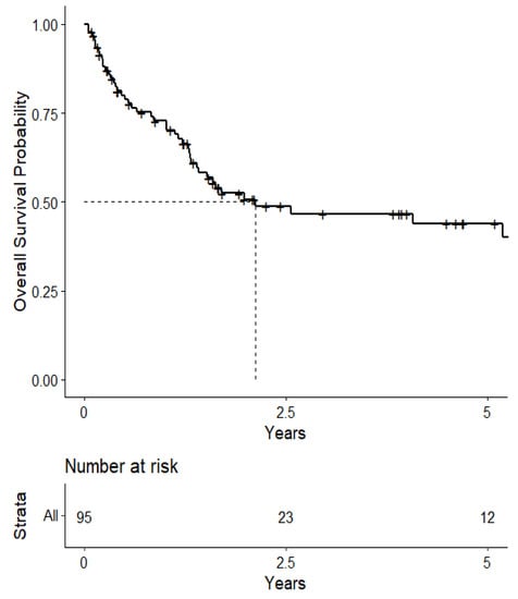 - Johung, K.L.; Yeh, N.; Desai, N.B.; Williams, T.M.; Lautenschlaeger, T.; Arvold, N.D.; Ning, M.S.; Attia, A.; Lovly, C.M.; Goldberg, S.; et al. Extended Survival and Prognostic Factors for Patients with ALK -Rearranged Non-Small-Cell Lung Cancer and Brain Metastasis. JCO 2016, 34, 123–129. [Google Scholar] [CrossRef]