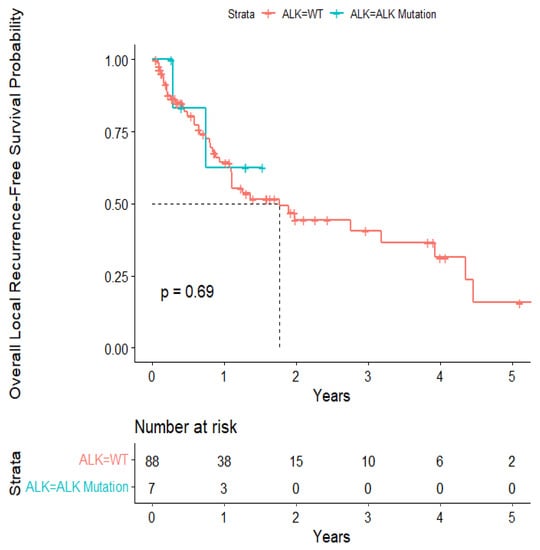 Kaplan–Meir survival curve of ALK-rearranged mutational status predicting local recurrence-free survival.