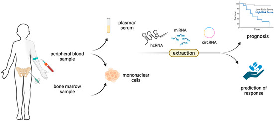 Non-coding RNAs, such as microRNAs (miRNAs), long non-coding RNAs (lncRNAs) and circular RNAs (circRNAs) can be extracted directly from plasma or serum or from mononuclear cells derived from either the peripheral blood or the bone marrow and can serve as prognostic or predictive biomarkers.