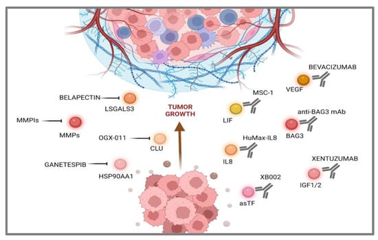 The response to synthetic inhibitors of MMPs (MMPIs) was studied in the past decades in several solid tumors. However, despite promising preclinical data, all trials were unsuccessful in reducing tumor mass or improving overall survival [89].