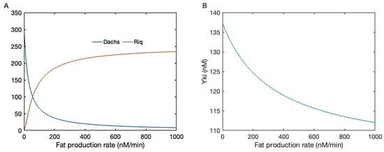 Here , , and are the binding/unbinding rates between Wts and Dachs, Riq, and Ex, respectively, and represents the number of separate membrane regions in the model. The mechanical regulation of Wts through Jub is not incorporated in the current equation. In accord with the previous model in [9], the current model predicts the inhibitory effect of Fat on the membrane localization of Dachs and the enhancement of membrane localization of Riq in Figure 4A.