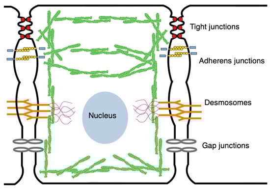 Components of the junctional complex. PM = plasma membrane. Taken from [58] with permission.