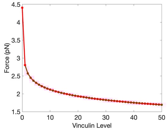 We show the crossover points for the state transitions as a function of Vinculin in Figure 11, where one sees that Vinculin enhanced the -to- transition by reducing the force required. Although Vinculin does not affect the binding between Jub and -catenin, it can inhibit the folding from to , which agrees with our expectation.