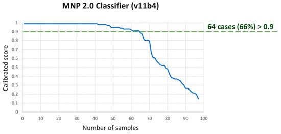 Summary of calibrated confidence score for assigned methylation class on the MNP 2.0 Classifier for our cohort.