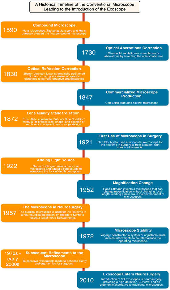 A Historical Timeline of the Conventional Microscope Leading to the Introduction of the Exoscope.