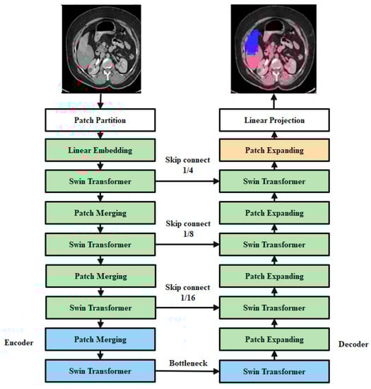 Encoders, bottleneck nodes, decoders, and skip links make up Swin-overall Unet’s structure. The swin transformer block is the foundation of the encoder, bottleneck, and decoder.