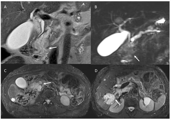 - Granata, V.; Fusco, R.; Catalano, O.; Avallone, A.; Leongito, M.; Izzo, F.; Petrillo, A. Peribiliary liver metastases MR findings. Med. Oncol. 2017, 34, 124. [Google Scholar] [CrossRef]