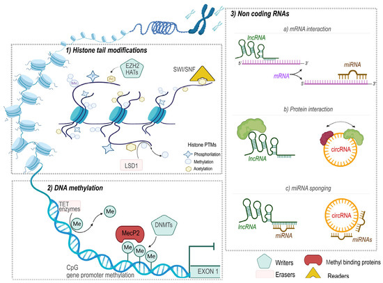 - Bure, I.V.; Nemtsova, M.V.; Kuznetsova, E.B. Histone Modifications and Non-Coding RNAs: Mutual Epigenetic Regulation and Role in Pathogenesis. Int. J. Mol. Sci. 2022, 23, 5801. [Google Scholar] [CrossRef]