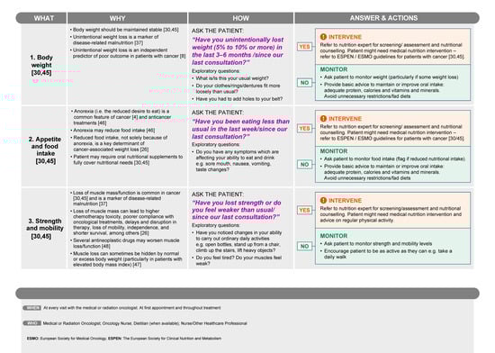 Chicago/Turabian StyleMuscaritoli, Maurizio, Gil Bar-Sela, Nicolo Matteo Luca Battisti, Borislav Belev, Jorge Contreras-Martínez, Enrico Cortesi, Ione de Brito-Ashurst, Carla M. Prado, Paula Ravasco, and Suayib Yalcin. 2023. "Oncology-Led Early Identification of Nutritional Risk: A Pragmatic, Evidence-Based Protocol (PRONTO)" Cancers 15, no. 2: 380. https://doi.org/10.3390/cancers15020380