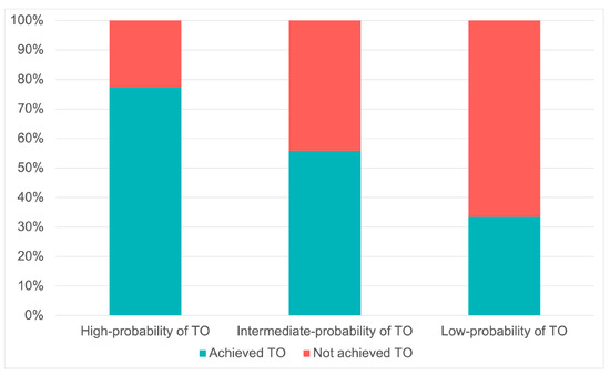 Simple and multivariable logistic regression was used to investigate the potential predictors of TO achievement. Stepwise selection (backward elimination) was used to compute multivariable regression analyses. A p-value < 0.05 indicated statistical significance; variables with a p-value < 0.1 were considered marginal statistical significance. Statistical analyses were performed using R, RStudio 4.2.1 (2022).