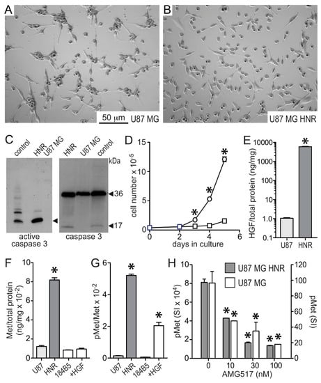 3.3. HGF and MET Gene Amplification in U87 MG/HNR