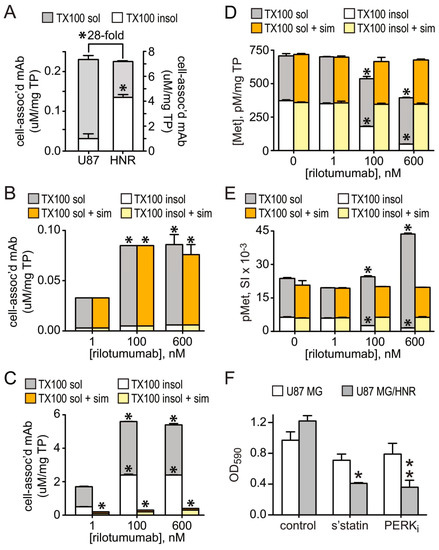 3.1. HGF and Met Superabundance in Rilotumumab-Resistant U87 MG Cells