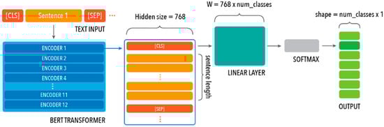 The BERT model developed was pretrained on the English language using the BERT-base uncased tokenizer. This model’s standard architecture comprises 12 transformer block layers with a hidden size of 768 and 12 self-attention heads (