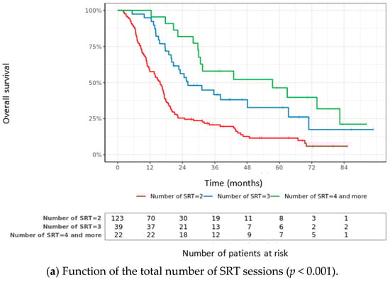 3.7. Overall Survival Based on the Number of SRT Sessions (OSSRT)