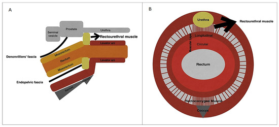 - Brooks, J.D.; Eggener, S.E.; Chao, W.M. Anatomy of the rectourethralis muscle. Eur. Urol. 2002, 41, 94–100. [Google Scholar] [CrossRef] [PubMed]