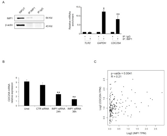 3.3. IMP1 Binds CDC25A mRNA