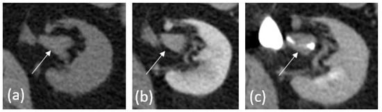- Vikram, R.; Sandler, C.M.; Ng, C.S. Imaging and Staging of Transitional Cell Carcinoma: Part 2, Upper Urinary Tract. Am. J. Roentgenol. 2009, 192, 1488–1493. [Google Scholar] [CrossRef]