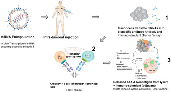 44. Beck, J.D.; Reidenbach, D.; Salomon, N.; Sahin, U.; Tureci, O.; Vormehr, M.; Kranz, L.M. mRNA therapeutics in cancer immunotherapy. Mol. Cancer 2021, 20, 69. [Google Scholar] [CrossRef] [PubMed]