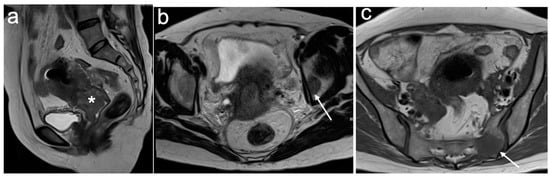 - Otero-García, M.M.; Mesa-Álvarez, A.; Nikolic, O.; Blanco-Lobato, P.; Basta-Nikolic, M.; de Llano-Ortega, R.M.; Paredes-Velázquez, L.; Nikolic, N.; Szewczyk-Bieda, M. Role of MRI in staging and follow-up of endometrial and cervical cancer: Pitfalls and mimickers. Insights Imaging 2019, 10, 19. [Google Scholar] [CrossRef] [PubMed]