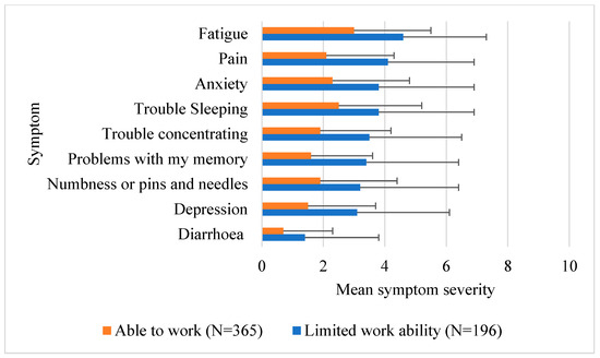 | Total Sample (n = 561) | Limited Work Ability (n = 196) | Able to Work (n = 365) | |
