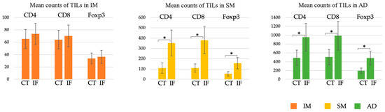 2.3. Assessment of the Phenotype, Number, and Distribution of TILs