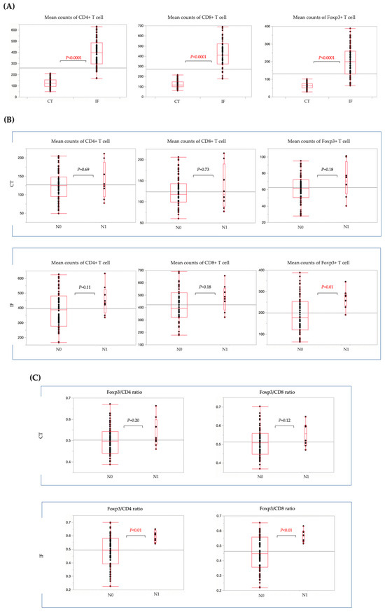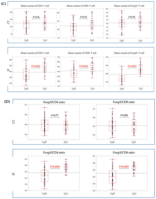 - Kinoshita, F.; Takada, K.; Yamada, Y.; Oku, Y.; Kosai, K.; Ono, Y.; Tanaka, K.; Wakasu, S.; Oba, T.; Osoegawa, A.; et al. Combined Evaluation of Tumor-Infiltrating CD8 + and FoxP3 + Lymphocytes Provides Accurate Prognosis in Stage IA Lung Adenocarcinoma. Ann. Surg. Oncol. 2020, 27, 2102–2109. [Google Scholar] [CrossRef] [PubMed]