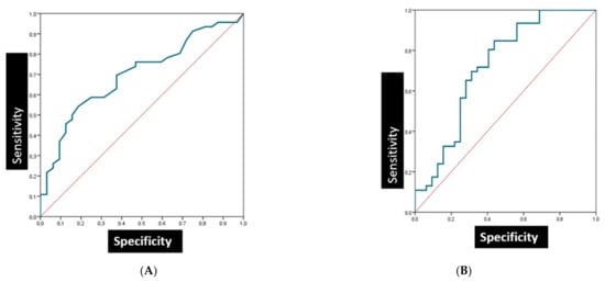 The Ferritin in LPO with a cut-off point of 8.5C showed a sensitivity and specificity of 54.3% and 82.3, respectively. The area under the curve (AUC) was 0.69 (95% confidence interval (95% CI): 0.58–0.82; p = 0.003) (Figure 3A).
