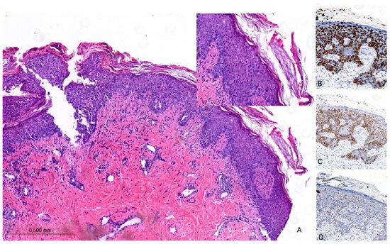 - Morandi, L.; Pession, A.; Marucci, G.L.; Foschini, M.P.; Pruneri, G.; Viale, G.; Eusebi, V. Intraepidermal Cells of Paget’s Carcinoma of the Breast Can Be Genetically Different from Those of the Underlying Carcinoma. Hum. Pathol. 2003, 34, 1321–1330. [Google Scholar] [CrossRef]