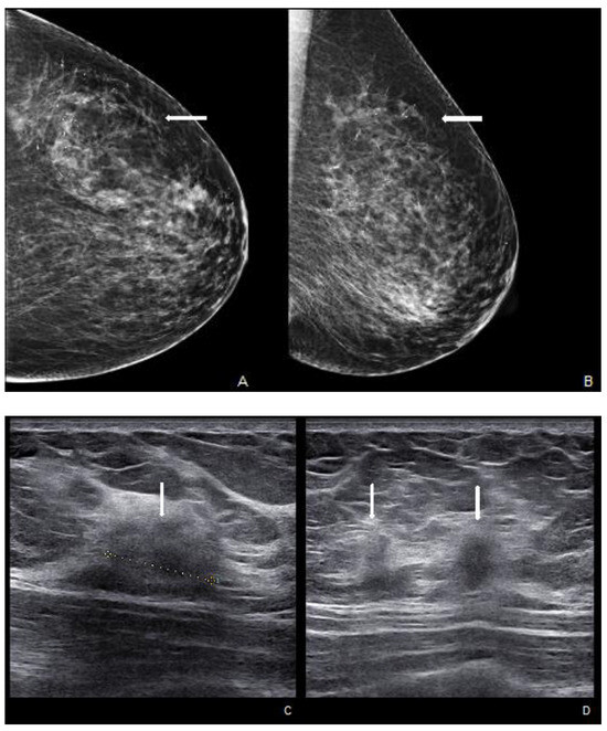 - Günhan-Bilgen, I.; Oktay, A. Paget’s Disease of the Breast: Clinical, Mammographic, Sonographic and Pathologic Findings in 52 Cases. Eur. J. Radiol. 2006, 60, 256–263. [Google Scholar] [CrossRef]