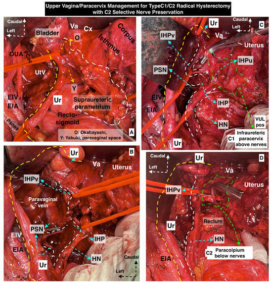 Type C1—The deep (caudal) resection margin is at the level of the deep uterine vein (vaginal vein) in order to preserve the underlying PSNs and IHP [5,8,10,11,12,13].